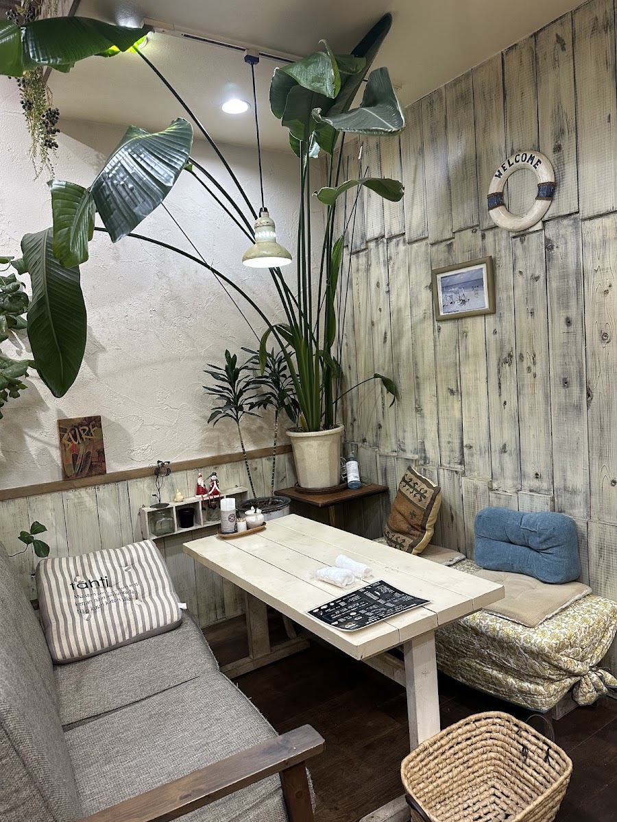 Upon entering, you are greeted by a cozy ambiance filled with the gentle warmth of sunlight filtering through the windows. The decor is a fusion of vintage charm and modern aesthetic, which perfectly encapsulates the relaxed vibe of a traditional Japanese café. The attention to detail is evident, with beautifully arranged plants and decorative objects that create an inviting and serene atmosphere.